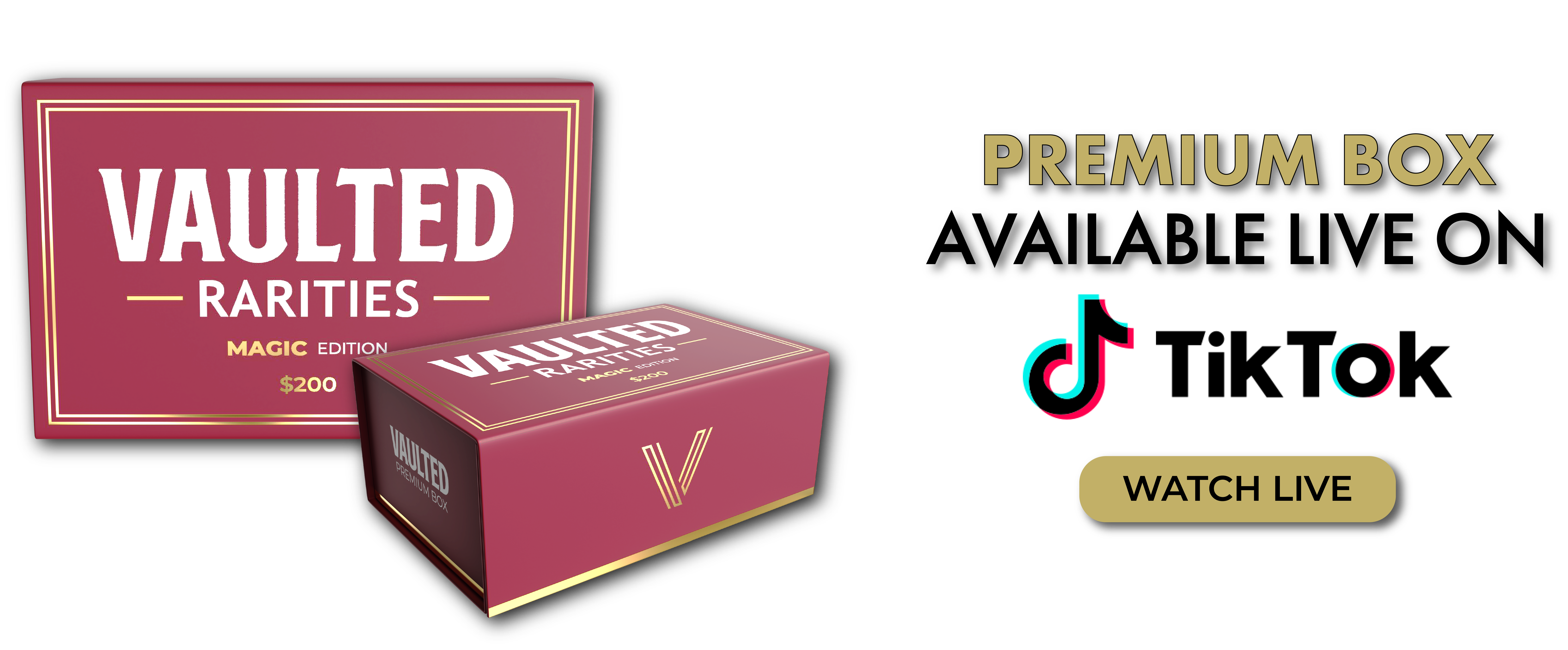 Each Vaulted Rarities Premium Box includes a curated mix of Magic: The Gathering treasures, from premium singles and sealed booster packs to collector products like Secret Lairs, Play Booster Boxes, and more. Every item is carefully selected for rarity, excitement, and collectibility. While contents vary, you can expect cards and products that span over 30 years of Magic history, all professionally sourced and securely packaged.
