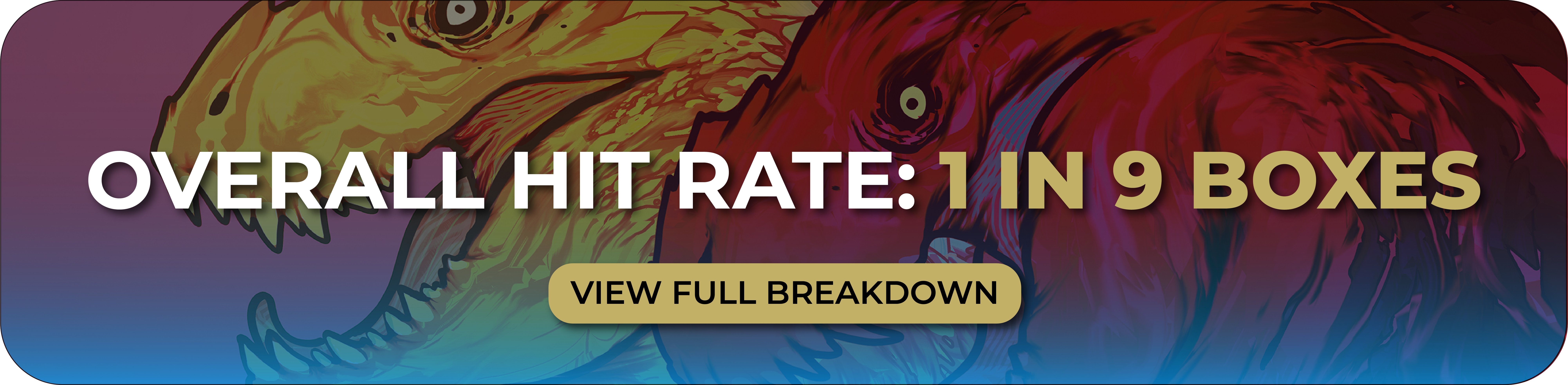 Each Vaulted Rarities Premium Box offers exciting opportunities to pull rare and coveted cards. There's a 1 in 250 chance of finding a Grail, a 1 in 100 chance of pulling a Mythic, and a 1 in 10 chance of landing a Hit. The odds are carefully designed to deliver an exciting unboxing experience with every box.