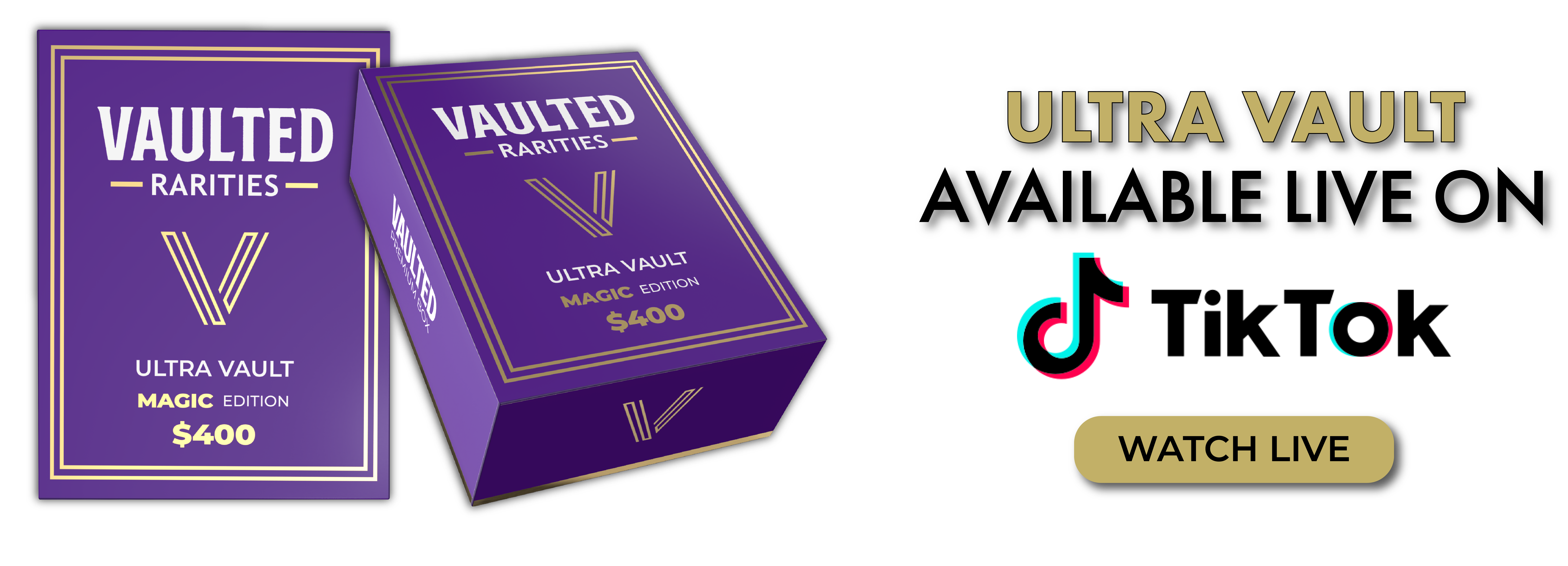 Each Vaulted Rarities Ultra Vault offers exciting opportunities to pull rare and coveted cards. There's a 1 in 160 chance of finding a Grail, a 1 in 100 chance of pulling a Mythic, and a 1 in 9 chance of landing a Hit. The odds are carefully designed to deliver an exciting unboxing experience with every box.