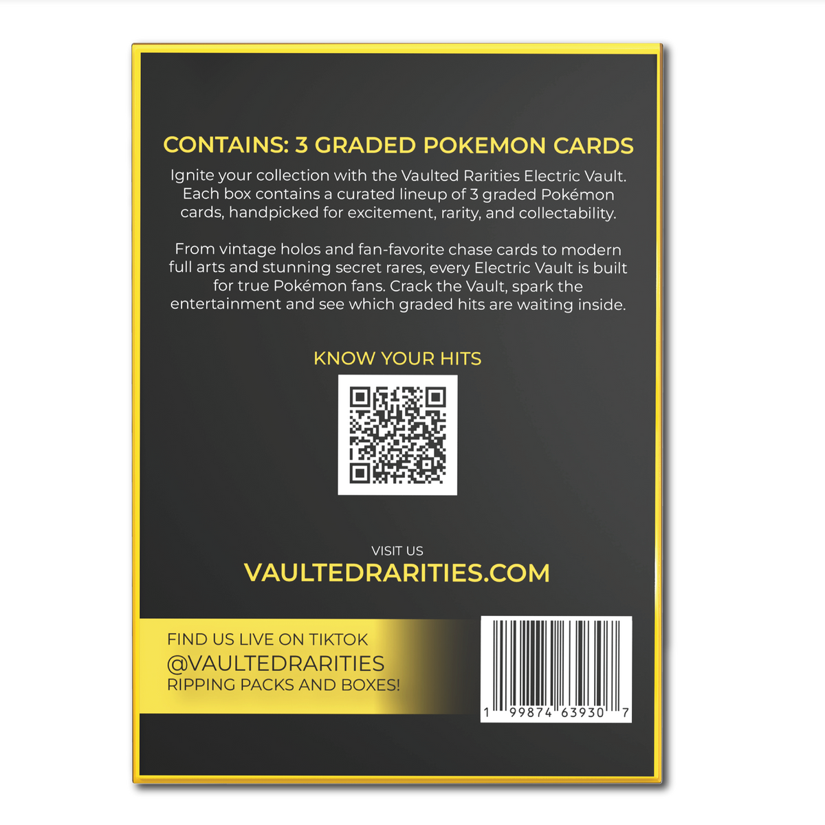 Designed for Pokémon fans, streamers, and collectors who love the thrill of graded surprises, the Electric Vault turns every unbox into a reveal moment. Crack the Vault and see which graded hits are waiting inside.